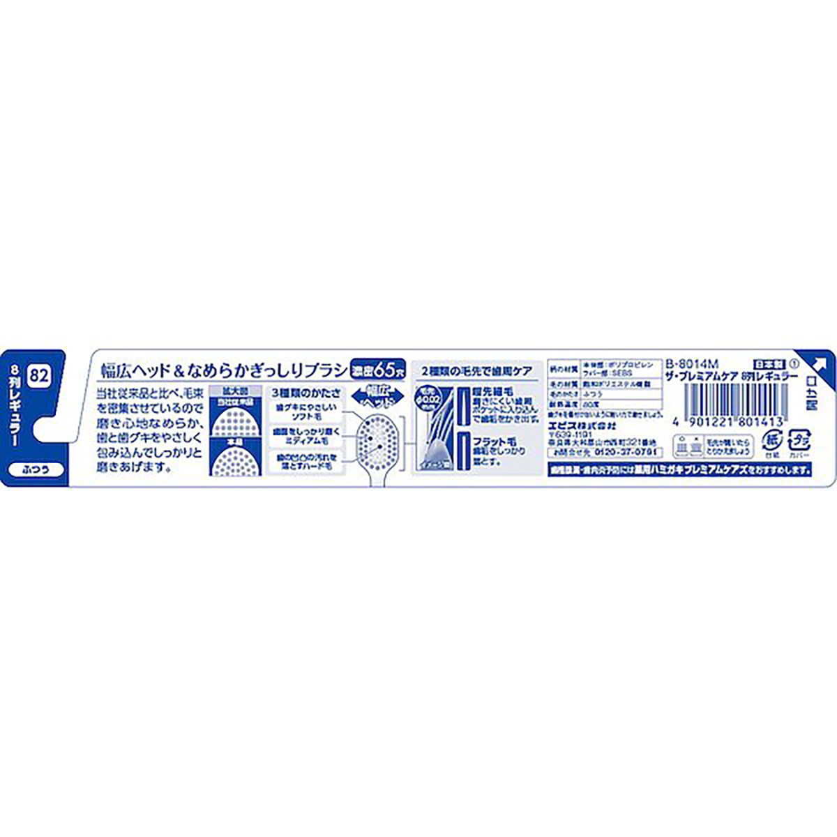 EBISU Premium Care 8 Line, Normal Toothbrush (Regular Bristles) colors will be shipped randomly-4901221801413